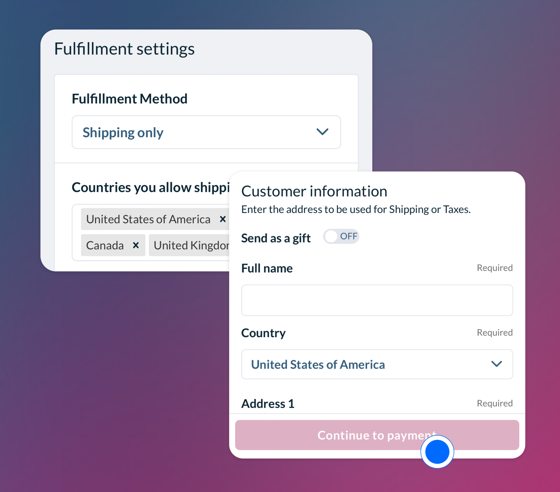 Update your fulfillment settings to accept orders from customers in other countries. Your customers will be able to select from those options in the checkout form, and enter their international address.